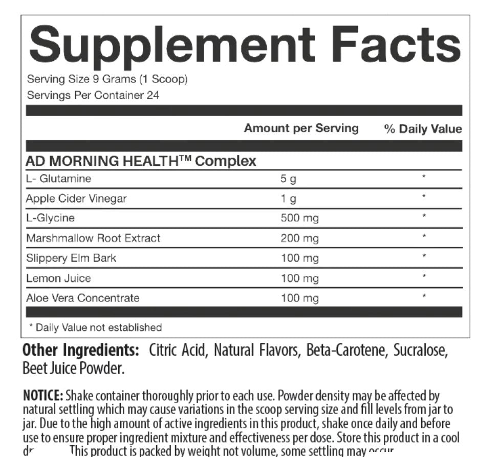 Good Mornin is a unique blend of powerful ingredients that work together to support gut health, cleanse the digestive tract, and improve overall digestion. With key ingredients like apple cider vinegar, lemon juice, l-glutamine, and aloe vera juice, Good Mornin is the perfect way to start your day and set yourself up for success.