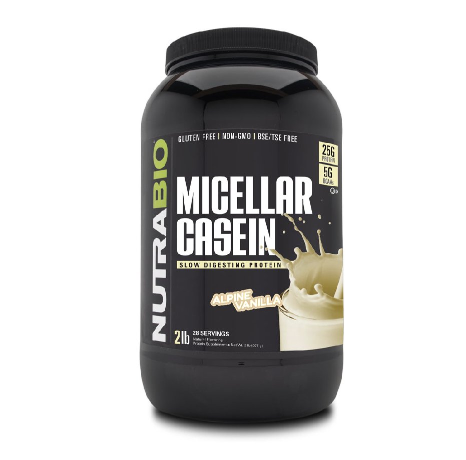 Slow digesting Micellar Casein (pronounced kay-seen) is a complete protein that supplies all of the essential amino acids in the amounts necessary for muscle growth and maintenance. One serving of NutraBio Casein provides a complete serving of muscle building BCAA's and glutamine/glutamine precursors while maintaining a low fat, low carb profile.