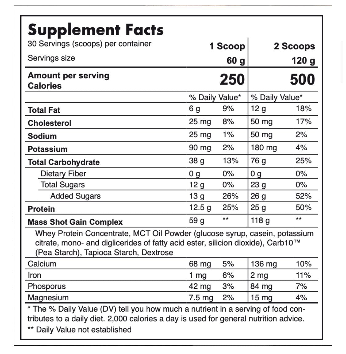 SUGGESTED USE: As a dietary supplement, mix one (1) scoop, or (2) scoops of Mass Chaser in as little as 4oz (100ml) of water depending on personal preference. AD Mass Chaser utilizes unique technology that allows you to mix upto 120 grams of powder in as little as 4oz (100ml) of water for the perfect high calorie addition to any diet. Suitable for men or women.