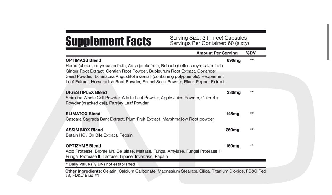 - OPTIMASS – Herbal combination to aid efficient digestion.